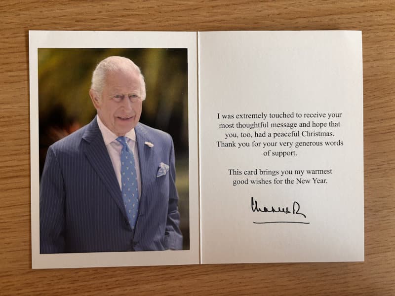 Pendant le temps fort de Noel, les élèves de 6ème F se sont appliqués à écrire en anglais plusieurs cartes de vœux à l’intention du Roi Charles : papiers cartons de couleurs différentes, stylos à paillettes, rubans, coton en guise de neige, découpage et autres décorations… Tout était fait pour confectionner de très jolies cartes, chaque élève gardant au fond de lui l’espoir que peut-être le cabinet du Roi nous répondrait…