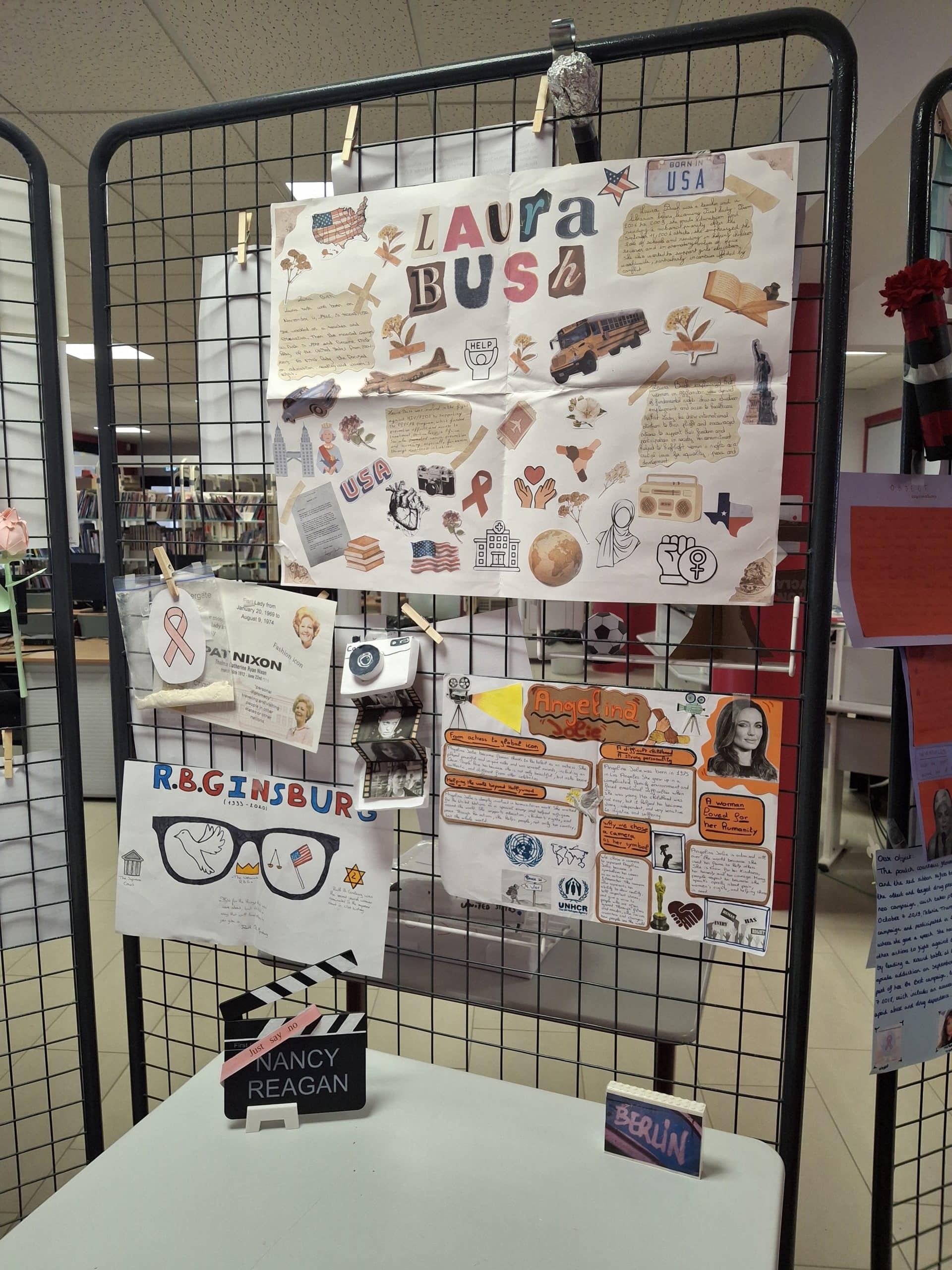Elle se compose d’affiches et d’objets représentant les femmes choisies, permettant ainsi une immersion à la fois visuelle et concrète dans leurs parcours.